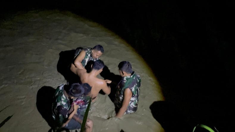 Dengan menggunakan perlengkapan standar dan mempertaruhkan keselamatan, mereka menerjang derasnya arus sungai yang juga dipenuhi batu-batu besar untuk mengevakuasi korban ke tempat aman.