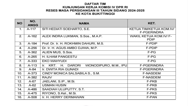 Kehadiran lintas fraksi ini menunjukkan komitmen bersama dalam pengawasan serta dukungan terhadap pembangunan sektor pertanian, kehutanan, kelautan, dan pangan di daerah.