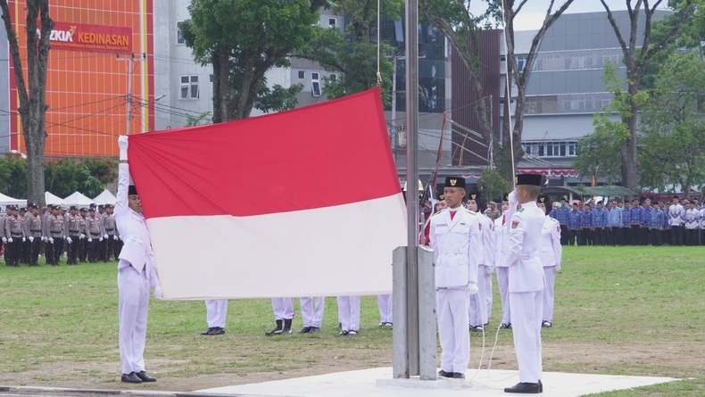 Duplikat bendera yang berkibar di udara seakan mengingatkan kembali pada cita-cita luhur bangsa: bersatu, berdaulat, dan sejahtera.