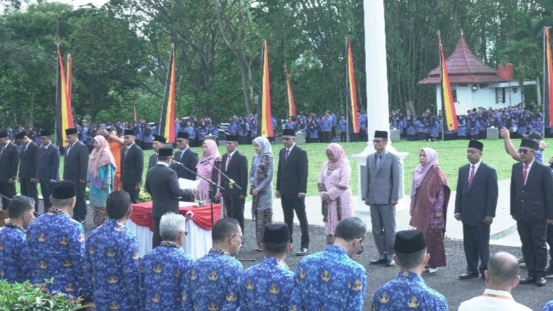 BUKITTINGGI, iNEWSPadang.ID — Wali Kota Bukittinggi, Ramlan Nurmatias, mengukuhkan 24 pejabat eselon III dan IV dalam apel gabungan Aparatur Sipil Negara (ASN) di halaman Balai Kota, Rabu, 17 September 2025. Mutasi ini menjadi rotasi perdana dalam periode kepemimpinan 2025–2030.