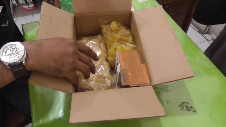 “Gerak-geriknya tidak normal. Waktu ditanya, jawabannya ke mana-mana. Dari situ saya lapor ke kantor pusat dan diminta membuka paket dengan dokumentasi video. Ternyata benar bukan makanan isinya,” tutur Nita.