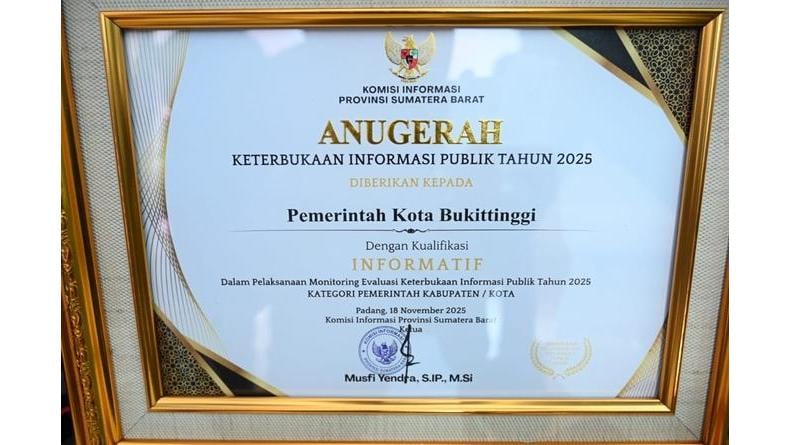 “Ke depan, tentu ini akan kami pertahankan dan tingkatkan. Pemerintah Kota Bukittinggi siap melayani masyarakat, khususnya di bidang informasi publik. Keterbukaan harus terus diperkuat agar setiap program dan kebijakan pemerintah tersampaikan secara utuh kepada masyarakat,” kata Emil sesampai di Bukittinggi, Rabu (19/11/2025).