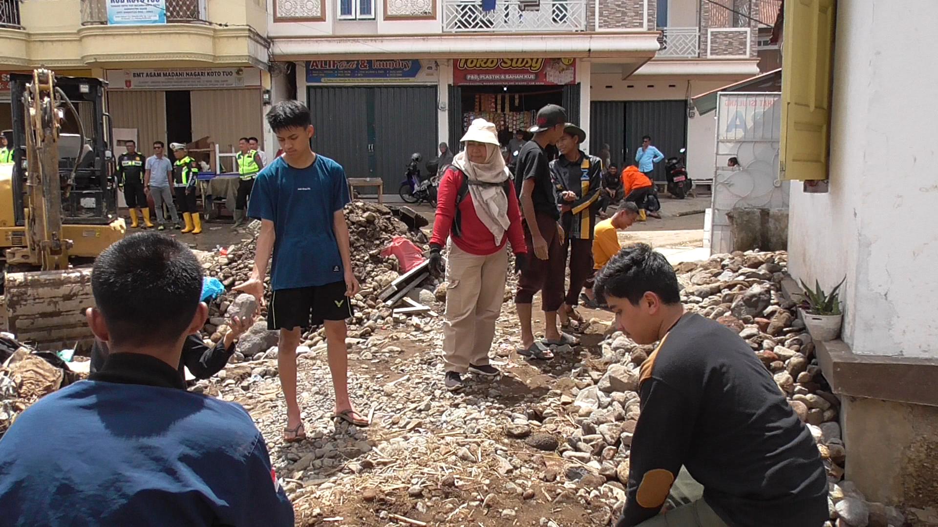 Sementara itu, puluhan pelajar Pramuka dikerahkan untuk membantu membersihkan permukiman warga dari bebatuan dan lumpur sisa banjir bandang.