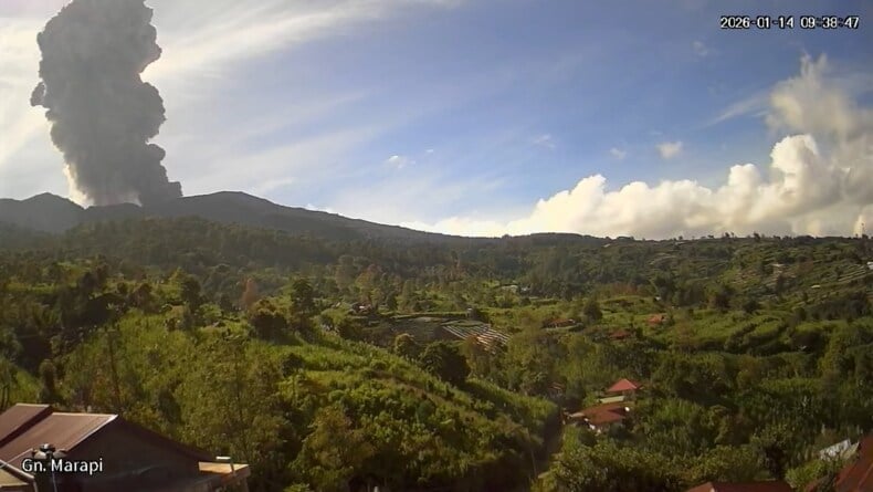 AGAM, iNEWSPadang.ID — Gunung Marapi yang berada di Kabupaten Agam, Sumatera Barat, kembali mengalami erupsi pada Rabu, 14 Januari 2026. Letusan terjadi sekitar pukul 09.36 WIB dengan kolom abu teramati mencapai sekitar 1.600 meter di atas puncak gunung atau sekitar 4.491 meter di atas permukaan laut.