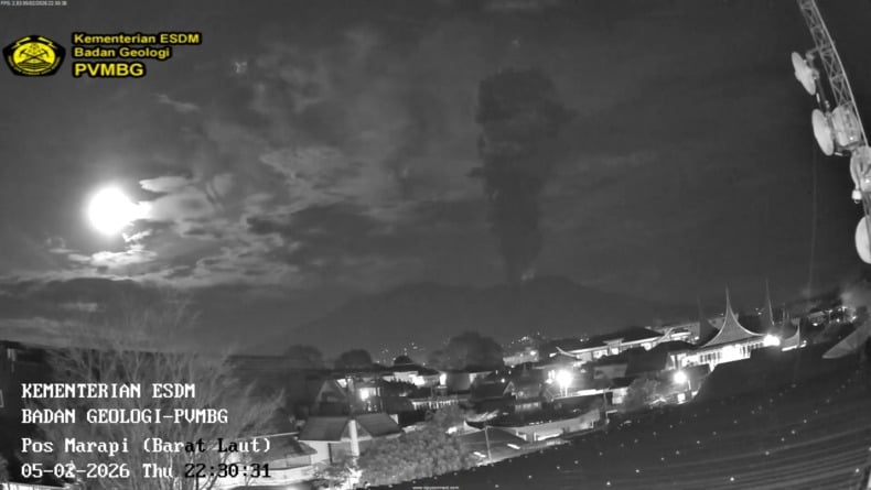 Sementara, sepanjang periode pengamatan Kamis, 5 Februari 2026, Gunung Marapi tercatat mengalami tiga kali gempa letusan dengan amplitudo 25,9 hingga 30,3 millimeter dan durasi 25 hingga 87 detik. Selain itu, terpantau dua kali gempa hembusan, satu gempa vulkanik dangkal, serta tiga gempa vulkanik dalam. Secara visual, teramati tiga kali letusan dengan tinggi kolom berkisar antara 600 hingga 3.000 meter, dengan warna asap kelabu hingga kemerahan.