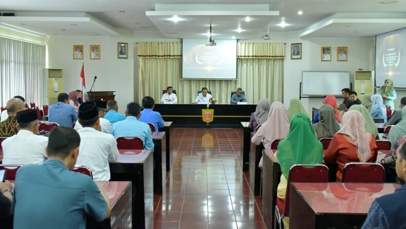 Wakil Bupati Agam dan Sekda bersama jajaran OPD usai menerima hasil evaluasi pelayanan publik tahun 2025 dari Ombudsman RI, Kamis (26/2). Foto: Istimewa