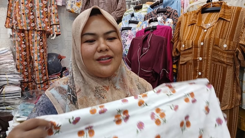 Tidak hanya daster, Okan juga menawarkan blus dengan harga promo. “3 100… tiga seratus… licin… licin… bawalah pulang,” katanya lagi, membuat sejumlah pengunjung yang lewat berhenti sejenak karena penasaran.